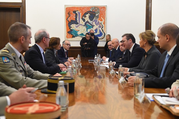 Predsednik Srbije Aleksandar Vučić sastao se u petak u Beogradu s ministarkom odbrane Francuske Florans Parli, koja boravi u poseti Beogradu.