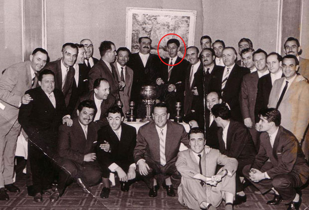 Vladimir Dedijer (u sredini) sa Zvezdinim kapitenom Rajkom Mitićem i Josipom Brozom