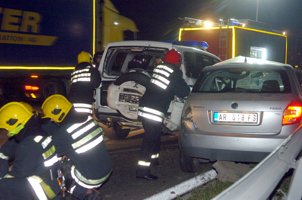 Стравичан ланчани удес неколико возила у зауставној траци на ауто-путу Београд-Ниш код Бегаљичког брда. Возач "фабије" Александар Ђ. (54) страдао када је налетео на службено возило. "Шкода" ударила у ауто МУП који је затим налетео на "ауди"