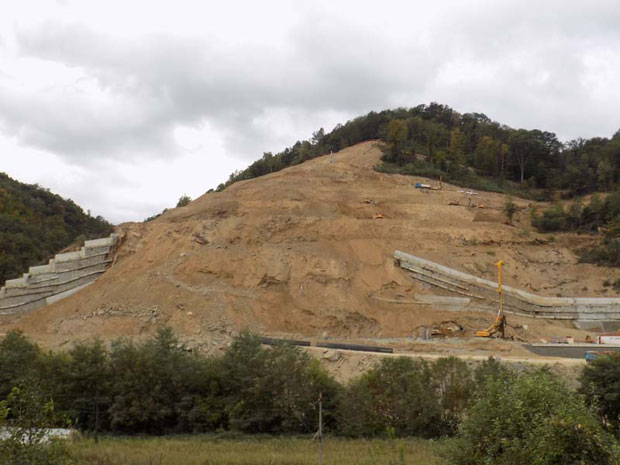 - Од око 350.000 кубика земље већ је уклоњена трећина, док је у подножју изведено двадесетак армиранобетонских шипова за дубоко фундирање будуће галерије, као и два сета оплате за израду носача. Радови се изводе непрекидно. У току дана се нестабилни материјал гура са косине, а у ноћној смени се обавља одвоз земље и израда шипова - каже Вуковић. Пре нешто више од месец дана обрушило се око 100 метара заштитне косине чија је укупна дужина 725 метара.