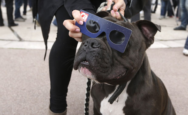 БЕОГРАД - Грађани Србије данас су били у прилици да буду сведоци несвакидашње појаве - помрачења Сунца, а пошто је ведар дан многи су изашли из својих домова и гледали ту појаву. Тај феномен нису само људи посматрали, јер су повели и своје кућне љубимце којима су стављали заштитне наочаре и надали се да ће и оне видети како изгледа када Месец заклони Сунце.