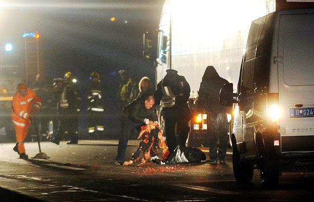 Непозната женска особа трагично настрадала у близини наплатне рампе. Преко тела прелазили аутомобили и камиони разносећи делове свуда по путу