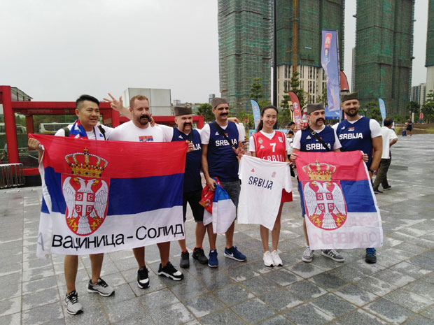 ИСПРЕД дворане у Фошану данас је српски био званичан језик... Навијачи који су дошли буквално са свих страна света, били су најчешће тражени за сликање. Кинези су са осмесима и показивањем подршке пратили све наше групе, огрнуте заставама, са шајкачама, оригиналним порукама, а највише их је занимало скандирање и певање навијачких песама.