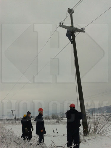 У врлетима изнад села Горње Зуниче затекли смо екипу зајечарске Електродистрибуције. Пробијали су се кроз сметове и на лицу места, на температури у дебелом минусу, "крпили" су покидане жице, а затим би се пењали на ледом оковане електричне стубове и намештали проводнике на далековод.