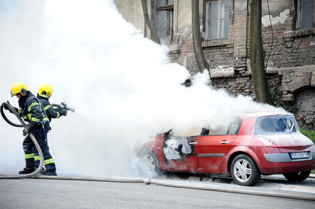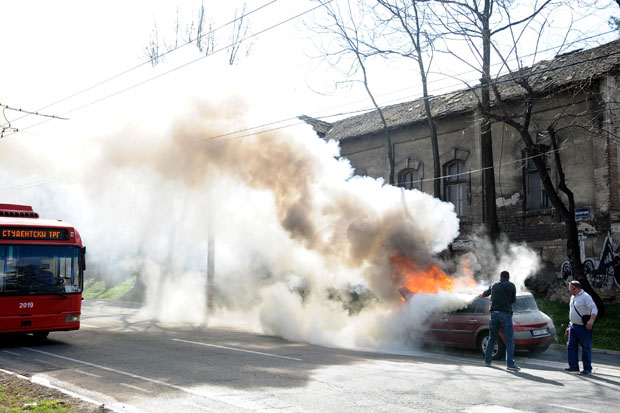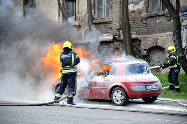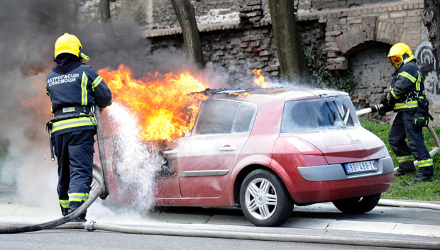 Automobil ''reno megan'' kojim je upravljala žena, zapalio se danas oko 13.30 časova u Bulevaru kneza Aleksandra Karađorđevića na Dedinju