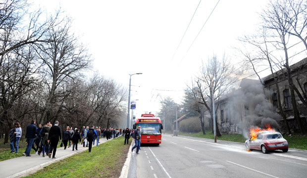 Tom prilikom, srećom, nije bilo povređenih. Vozači drugih vozila pokušavali su da ugase vatru koja je buknula, a trolejbuski saobraćaj privremeno je bio u prekidu.