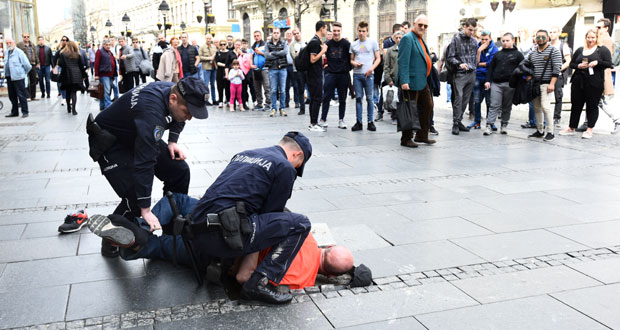 FOTO: Maltretirao prolaznike u Knez Mihajlovoj, čupao deo pločnika