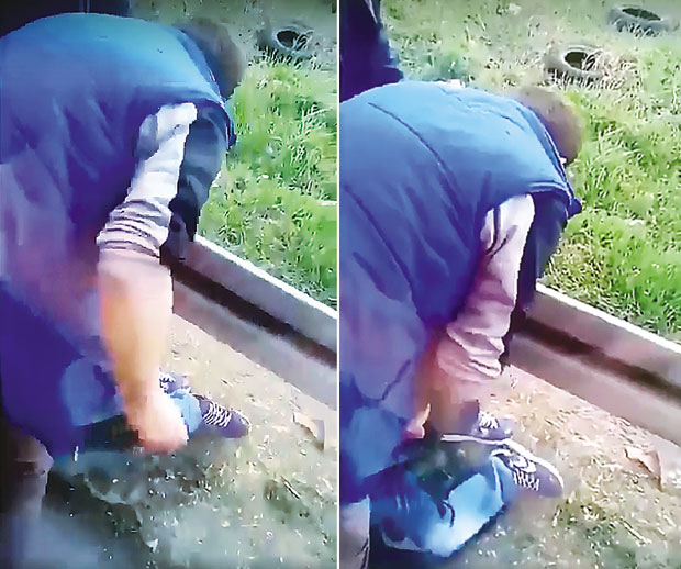 Poslednje sekunde snimka prikazuju mladića koji se grči i pokušava da se provuče ispod bankine, u nameri da izbegne udarce i pobegne od nasilnika.