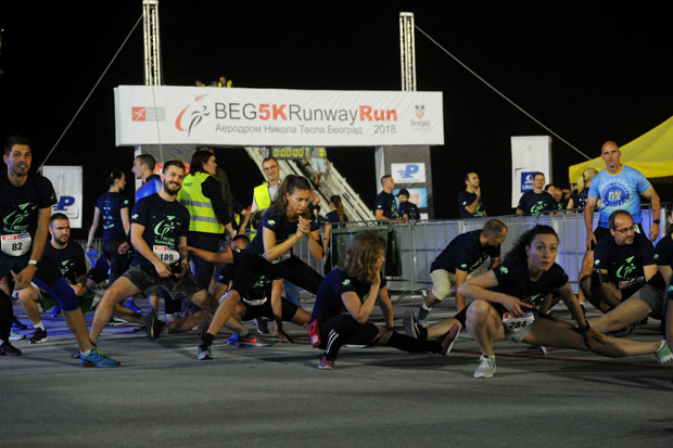 Prva trka "Beograd na pisti" (Beg 5K Runway Run) održana je u noći između subote i nedelje na aerodromu "Nikola Tesla" uz učešće oko 600 takmičara.