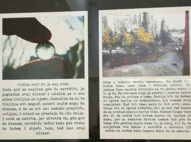 Više od 100 Beograđana je u ponedeljak uveče posetilo jedinstvenu izložbu koja je nastala tako što su deca iz Zvečanske mesec dana fotografisala sve ono što im je važno, a zatim svaku fotografiju povezala sa svojim iskustvom, svojim željama i svojim razmišljanjima.