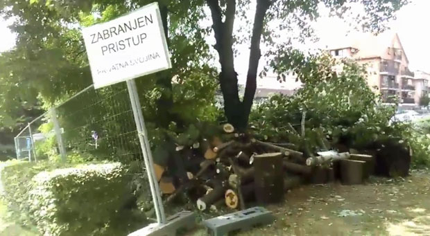 Seča stabala u Požeškoj: Uzalud se bune, zida privatnik (VIDEO)