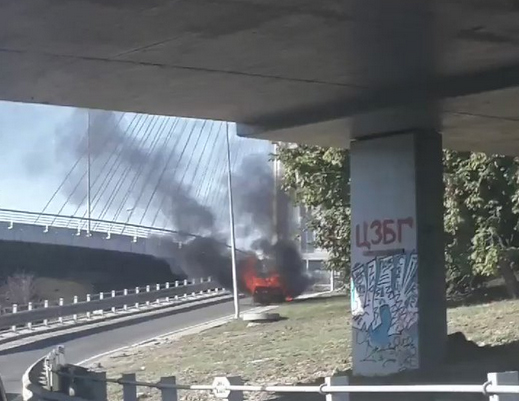 Snimak automobila u plamenu na Mostu na Adi, ne zna se ima li povređenih (VIDEO)