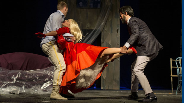 - Klasik Labiš došao je u pravo vreme: da na nas deluje pedagoški, a na publiku terapeutski - kaže Zoran Cvijanović, dok Goran Jevtić dodaje da u ovom komadu s "pevanjem, igranjem i pucanjem" svaki lik nosi svoju opsesiju u furioznom tempu.