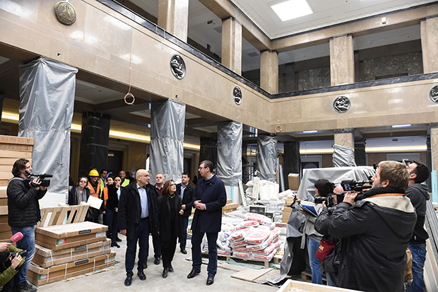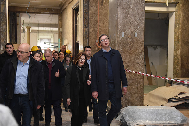 „Ovde od 2003. nema stalne postavke. Veoma sam zadovoljan što smo suštinski počeli obnovu 2014. Obnova će biti završena, uveravaju radnici i izvođači do 31. marta. Imaćete vremena da vidite kako se priprema postavka i verujem da na Vidovdan možemo da otvorimo vrata ovog muzeja, koji je uz Narodno pozorište sasvim sigurno najznačajnija srpska kulturna ustanovu za građane Srbije i sveta“, naglasio je Vučić.