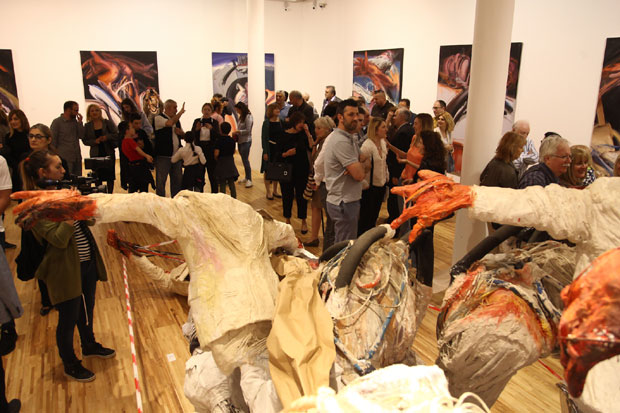 Izložba obuhvata 16 slika velikog formata, računajući po jedan triptih i poliptih, dva video rada i dve monumentalne skulpturalne instalacije. Biće pred Novosađanima do 25.maja.