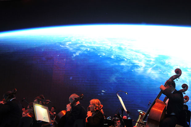 Uvod u putovanje, za koje su se posetioci pripremili ponevši ćebad, stolice na rasklapanje, ležaljke, prostirke za jogu, ali i grickalice, bila je uzbudljiva kompozicija Džona Adamsa "Kratka vožnja u brzoj mašini". Prikladna vizuelna pratnja, čiji je producent Amerikanac Dankan Kop, bio je svemirski brod koji se priprema za let.