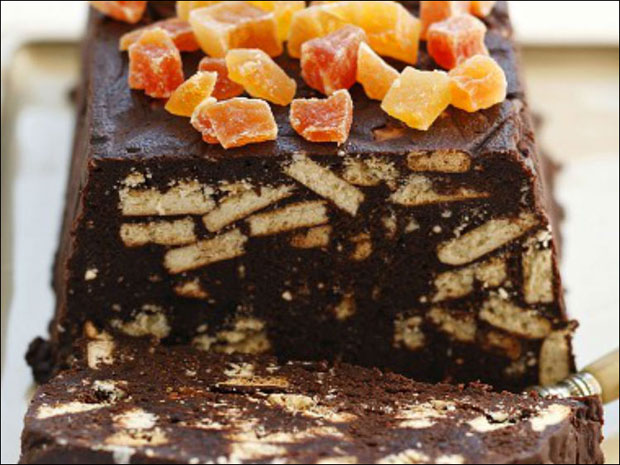 U činiji za kolač narendajte čokoladu. Krem pavlaku sipajte u šerpu i zagrejte na umerenoj temperaturi. Kad počne da ključa, prelijte preko čokolade i mešajte dok ne dobijete glatku smesu. Zatim umešajte umućena žumanca i omekšali puter. Keks izlomite i umešajte u prethodnu smesu, sve dobro izmešajte, pokrijte folijom i ostavite da se stegne u frižideru najmanje 6 sati. Narednog dana izvadite kolač iz kalupa, isecite na kriške i poslužite. Po želji, površinu kolača ukrasite kandiranim ili svežim voćem.