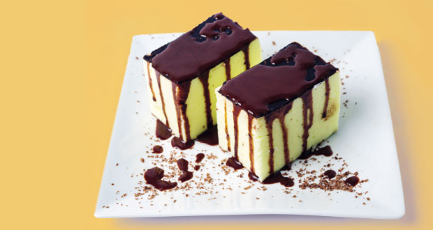 Penasto umutite jaja, šećer, vanilin šećer, pa dodajte margarin, brašno i prašak za pecivo. Stavite u pleh da se peče na 180 stepeni oko 40 minuta. Za to vreme spremite fil, skuvajte puding u mleku, sa šećerom i cimetom i prelijte ga preko ispečene kore. Napravite glazuru od čokolade koju ste istopili na ulju i pospite je preko fila.