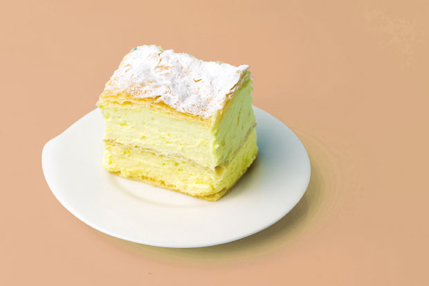 Penasto umutite jaje i četiri žumanceta sa pet kašika šećera. Dodajte ulje, brašno i prašak za pecivo. Dobijenu smesu pecite u zagrejanoj rerni na 200 stepeni 15 minuta. Od iste mere napravite još jednu koru. Umutite belanca u sneg, postepeno dodavajući šećer. U šerpu sipajte osam dcl vode, dodajte 200 grama šećera i kuvajte dok ne proključa. Pomešajte prašak za puding sa preostalom vodom, sipajte u ključalu vodu i ostavite da se kuva dok se ne zgusne. Sklonite sa vatre, dodajte umućeni sneg i mešajte. Ostavite da se prohladi. U pleh stavite jednu koru, prelijte je filom i prekrijte drugom korom. Ostavite kolač u frižideru da se ohladi i stegne, pa pospite šećerom u prahu i vanilin šećerom.