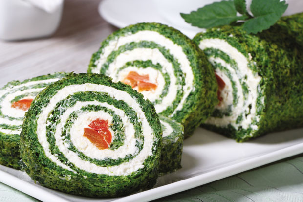 Zagrejte rernu na 210 stepeni. Maslinovim uljem podmažite pleh, skuvajte grašak i izmiksajte ga u blenderu, sa jajima i nanom. Posolite i pobiberite, dobro promešajte i pecite 25 minuta. Gotovu koru izvadite iz pleha, okrenite i ostavite da se ohladi. U činiji pomešajte kozji i krem-sir, pa premažite preko kore. Rasporedite salamu i čvrsto uvijte u rolat, obavijte folijom i ostavite u frižideru. Isecite na kriške.