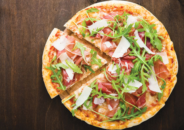 Ispecite testo za picu i dok je toplo preko njega stavite mladi sir. Poređajte pršutu, rukolu i čeri paradajz. Narendajte kačkavalj. Prelijte maslinovim uljem. Po želji možete sami da ispečete testo, da bi pica bila još ukusnija.
