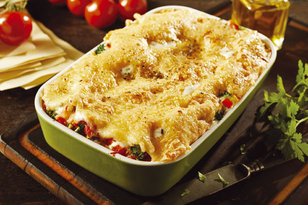 Brašno i so pomešajte, dodajte ulje, vodu i umesite testo. Podelite ga na dva dela, pokrijte aluminijumskom folijom i ostavite da stoji 15 minuta. Na pobrašnjenoj dasci testo tanko razvucite i izrežite u pravougaone oblike. Brokoli isecite na cvetiće, kratko prokuvajte u posoljenoj vodi i ocedite. Na ugrejanom maslacu kratko propržite brašno, dodajte mleko, so, biber i mešajte sve vreme dok ne provri i kuvajte još nekoliko minuta. Sklonite sa vatre, umešajte narendani sir. Pripremljene lazanje kratko prokuvajte i ocedite. Na dno nauljene vatrostalne posude složite deo lazanja. Po njima rasporedite deo čeri paradajza narezanog na četvrtine, kukuruz šećerac i brokoli, prekrijte bešamelom, zatim ponovite postupak i završite lazanjama. Sve prelijte ostatkom bešamela i pecite u rerni zagrejanoj na 200 C oko pola sata.