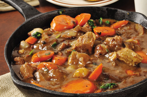 Propržite sitno seckan luk na ulju. Kada postane staklast dodajte mlevenu papriku, seckanu šargarepu i meso iseckano na kockice. Dolijte čašu vode da meso ogrezne i dinstajte oko pola sata, pa dodajte iseckane pečurke. Začinite po ukusu. Kada pečurke puste vodu, dodajte još malo vode i soka od paradajza. Pred sam kraj, umešajte brašno umućeno sa malo vode i ostavite još pet minuta da se krčka.