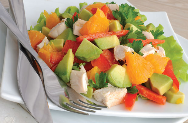Potrebno je: glavica zelene salate, jedan avokado i veća pomorandža, 10 crvenih rotkvica, sok od jedne veće pomorandže, po kašičica morske soli i vinskog sirćeta, 2 kašike maslinovog ulja i 2 kuvana jajeta