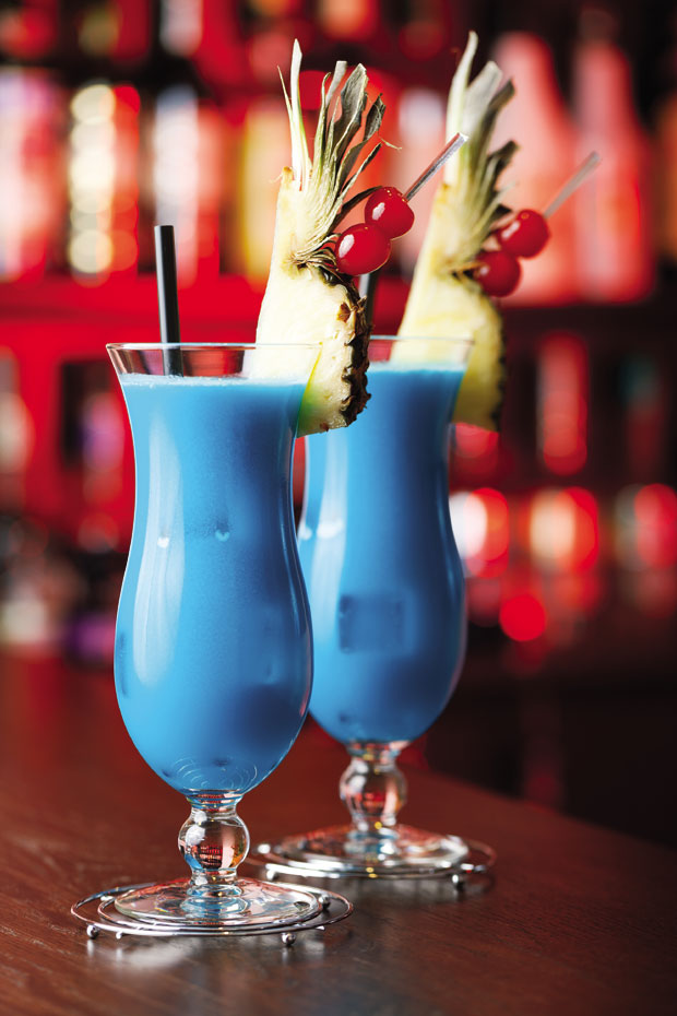 Potrebno je za 4 osobe: 80 ml likera Blue Curacao, 80 ml belog ruma, 40 ml kokosovog mleka, 200 ml soka od ananasa. Za ukrašavanje: kriške ananasa, kriške limete, nekoliko višanja, kockice leda