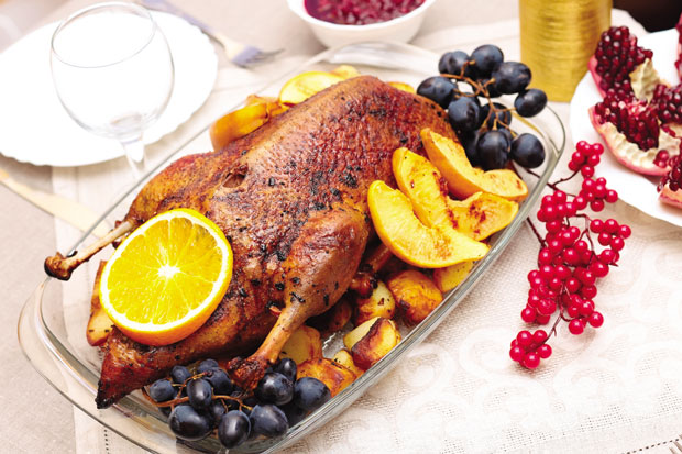 Potrebno je: patka (1,5 - 2 kg), kašika soli, 80 g meda, 3 kašike sirćeta, 3 kašike ulja, pomorandža, 2 praziluka