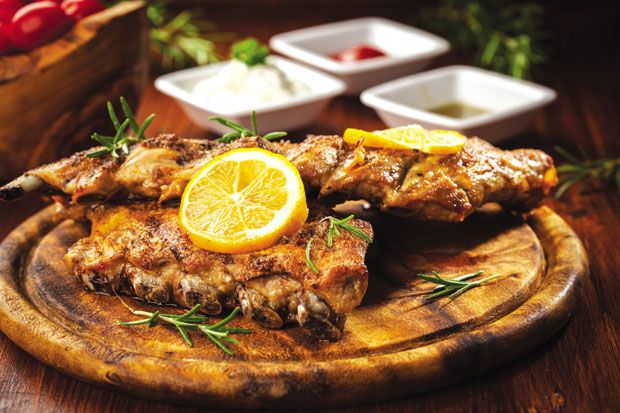 Potrebno je: 1,5 kg svinjskih rebara, 3 pomorandže, senf, mešavina kurkume, soli i mlevenog bibera
