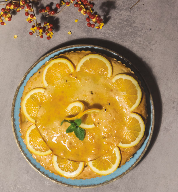 Potrebno je za testo: 3 pomorandže i malo njihove narendane kore, 250 g omekšalog putera, 170 g šećera, 4 jajeta, 200 g brašna, 2 kašičice praška za pecivo, 100 g mlevenih badema. Za sirup:, pomorandža, 2 limete, zvezda anisa, 75 g šećera