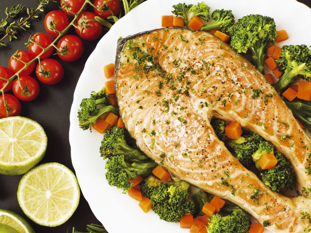 Filete lososa natrljajte đumbirom, suvim začinom i izgnječenim belim lukom. Prelijte susamovim uljem, sokom limete, soja-sosom, pa pospite iseckanom papričicom i šećerom. Neka riba stoji u ovoj marinadi oko sat vremena. Potom je pecite na zagrejanom ulju, sa obe strane, oko pet minuta. Losos služite uz šargarepu sečenu na štapiće ili uz kuvani brokoli.