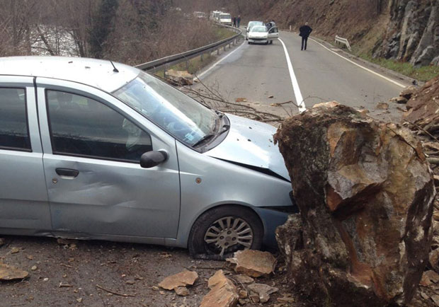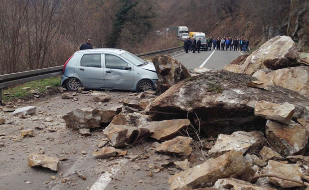 Iako je Novak u trenutku odrona munjevito reagovao i uspeo da skrene u levu kolovoznu traku, jedna kamena gromada je zakačila zadnji deo automobila koji se od siline udarca najpre okrenuo, a potom i udario u zaštitnu ogradu kraj kolovoza.