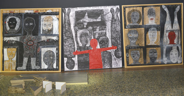 Veličković je poznat po prikazima raspadajućih tela i krvavih rana, a koji u novom trenutku ne može da se usredsredi samo na jednu žrtvu već vidi mnogo dalje, vidi svet oivičen žicama u mraku loših odluka.