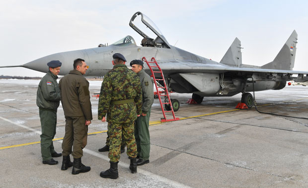 Oštro vojnički, u stavu mirno, uprkos oštrom vetru i ljutom mrazu, pilot "miga 29" major Nikola Mihailović predao je na aerodromu Batajnica raport ministru odbrane Aleksandru Vulinu. U senci moćnih letelica iste reči izgovara i njegov kolega kapetan Siniša Anakiev. Njih dvojica, zajedno sa tehničkim osobljem vreme između dva praznika provode na dežurstvu u svojoj eskadrili. Njihovu 204. avijacijsku brigadu VS u predbožićnim danima posetio je ministar odbrane, proverio spremnost ratne avijacije, ali i razgovarao sa ljudima o profesionalnim problemima i izazovima.