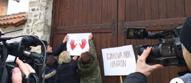 Transparente sa protesta okačili na zid manastira u kojem bez slobode kretanja samuju tri monahinje