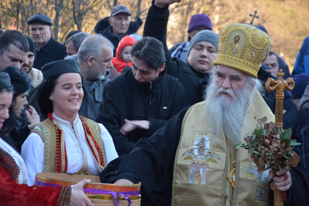 Vladika Amfilohije posebno je pozdravio decu koja su došla pred manastir, kao i Starocrnogorce i Bokelje koji su doneli njima svojstven - maslinov badnjak.