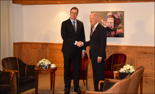 PREMIJER Aleksandar Vučić sastao se danas u Davosu sa odlazećim potpredsednikom SAD Džozefom Bajdenom.