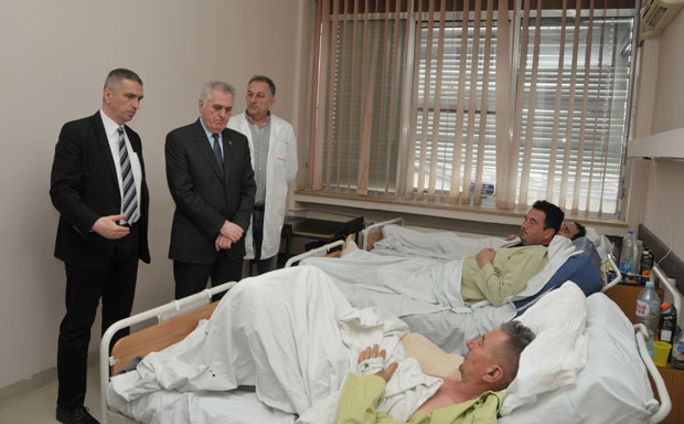 Predsednik Srbije Tomislav Nikolić i gradonačelnik Kragujevca Radomir Nikolić posetili su povređene u eksplozijama u Tehničko-remontnom zavodu koji su zbrinuti u Kliničkom centru Kragujevac.