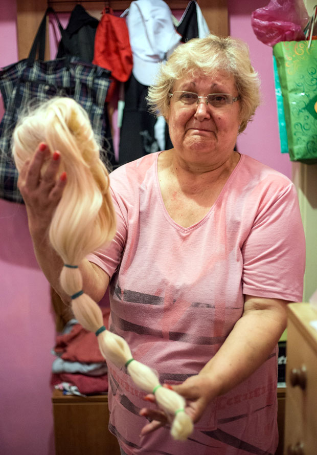Dragica pokazuje sinovljevu periku Foto T. Ćirić