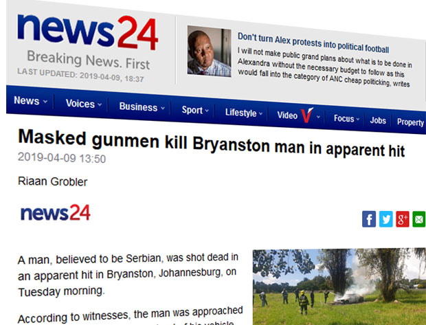 Prema izveštavanju lokalnih medija u Južnoafričkoj Republici, "Srbin je ubijen dok je izlazio iz svog 'mercedesa' u oblasti Brajanston oko 11.30. Reč je o stambenom kompleksu Hajburi u kom je srpski državljanin živeo".