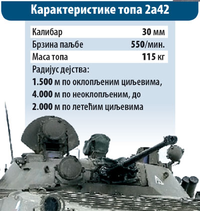 | UGOVORENA NABAVKA RAZORNOG TOPA ZA NAŠU VOJSKU "ŠIPUNOV" NA KUPOLI "LAZARA" SRPSKO oklopno vozilo "lazar" ubuduće će biti naoružano najsavremenijim topom 2A42 "šipunov" ruske proizvodnje - dogovoreno je tokom susreta premijera Vučića i predsednika Putina. Među temama razgovora dvojice lidera našla se i nabavka ruskog PVO sistema "Buk" i savremene granate "krasnopolj" za Vojsku Srbije. Detalji nabavke ovih ruskih sredstava biće dogovoreni tokom predstojeće posete potpredsednika ruske vlade Dmitrija Rogozina Srbiji. Naoružanje koje će se naći u Vojsci Srbije predstavlja sam vrh vojne tehnike, a svoju primenu naći će u sistemima koje razvija srpska namenska industrija. Top 2A42, kalibra 30 milimetara, u ruskoj armiji poznatiji kao "šipunov", naći će se na novoj kupoli domaćeg oklopnjaka "lazar 2", čime će ovo vozilo dobiti najbolje moguće performanse. Moćno oružje koriste i helikopteri i borna kola veće nosivosti. Granata "krasnopolj" biće osnovna municija za domaću haubicu "nora" 155 milimetara. Reč je o razornom projektilu izuzetne preciznosti, kojim će Srbija obezbediti odbrambeni primat u regionu. Zaštitu vazdušnog prostora Srbije, ukoliko dođe do dogovora, preuzeće rakete PVO "Buk", koji je među najboljim sistemima srednjeg dometa na svetu. |