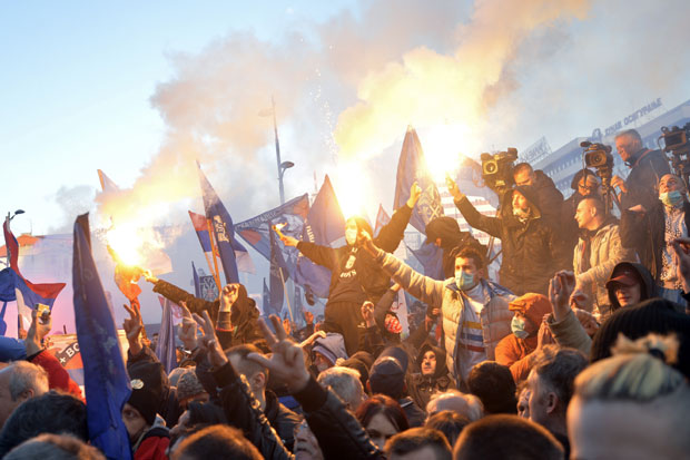 Kako navodi izveštač "Novosti", tokom šetnje aktivirano je nekoliko baklji i bačene su petarde.