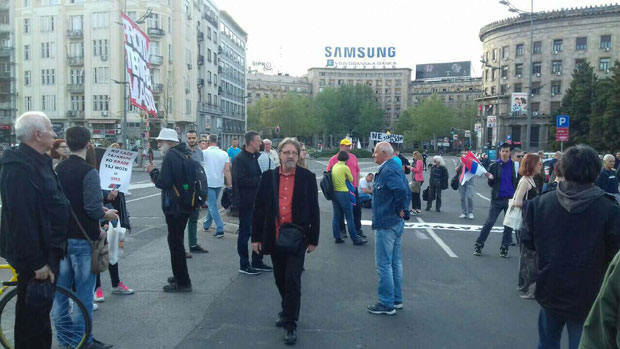 Demonstranti su najavili novi vid borbe protiv vlasti - blokadu institucija a odlučili su da počnu od RTS. Učesnici su u vreme emitovanja Dnevnika vodili svoj "dnevnik" . Za to vreme bio je blokiran saobraćaj u Takovskoj ulici, a među zahtevima učesnika bio je i onaj da predsednik Tomislav Nikolić poništi rezultate izbora za šefa države.