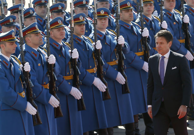 Italijanski premijer je dočekan uz najviše počasti ispred Palate "Srbija", uz intoniranje himne i smotru počasne garde, a dočeku Kontea prisustvovao je i ministar spoljnih poslova Ivica Dačić.