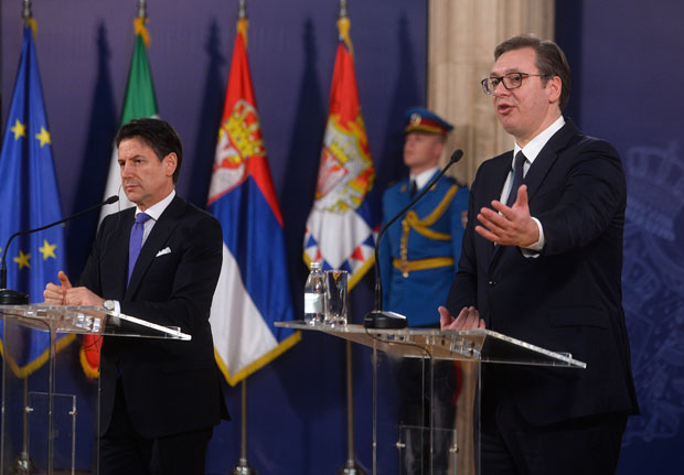 "Potvrđujem da će Italija biti ambasador Srbije i srpskih organa na putu evroposkih integracija", rekao je Konte danas na zajedničkoj konfereniciji za novinare sa srpskim predsednikom u Beogradu.