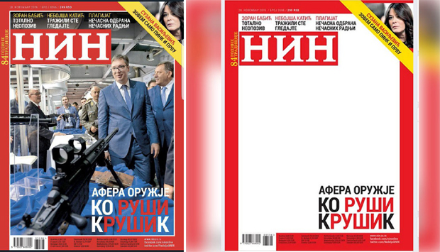 POSLE burne reakcije na naslovnu stranu, na kojoj je u prvom planu snajperska puška uperena prema predsedniku Aleksandru Vučiću, nedeljnik "Nin" u četvrtak je povukao tu verziju i objavio novu bez ikakve fotografije.