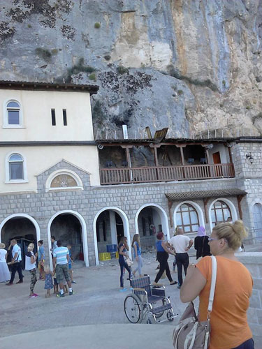 NIKŠIĆKI planinari dugo se veru po ostroškim stenama, "umivaju" kamen, ali očigledno da su kiša i visoke temperature "uznemirili" stenu koja se odvojila od greda iznad manastira i pala na vernike.