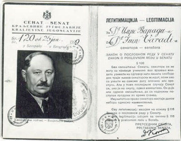 Senatorska legitimacija Imrea Varadija